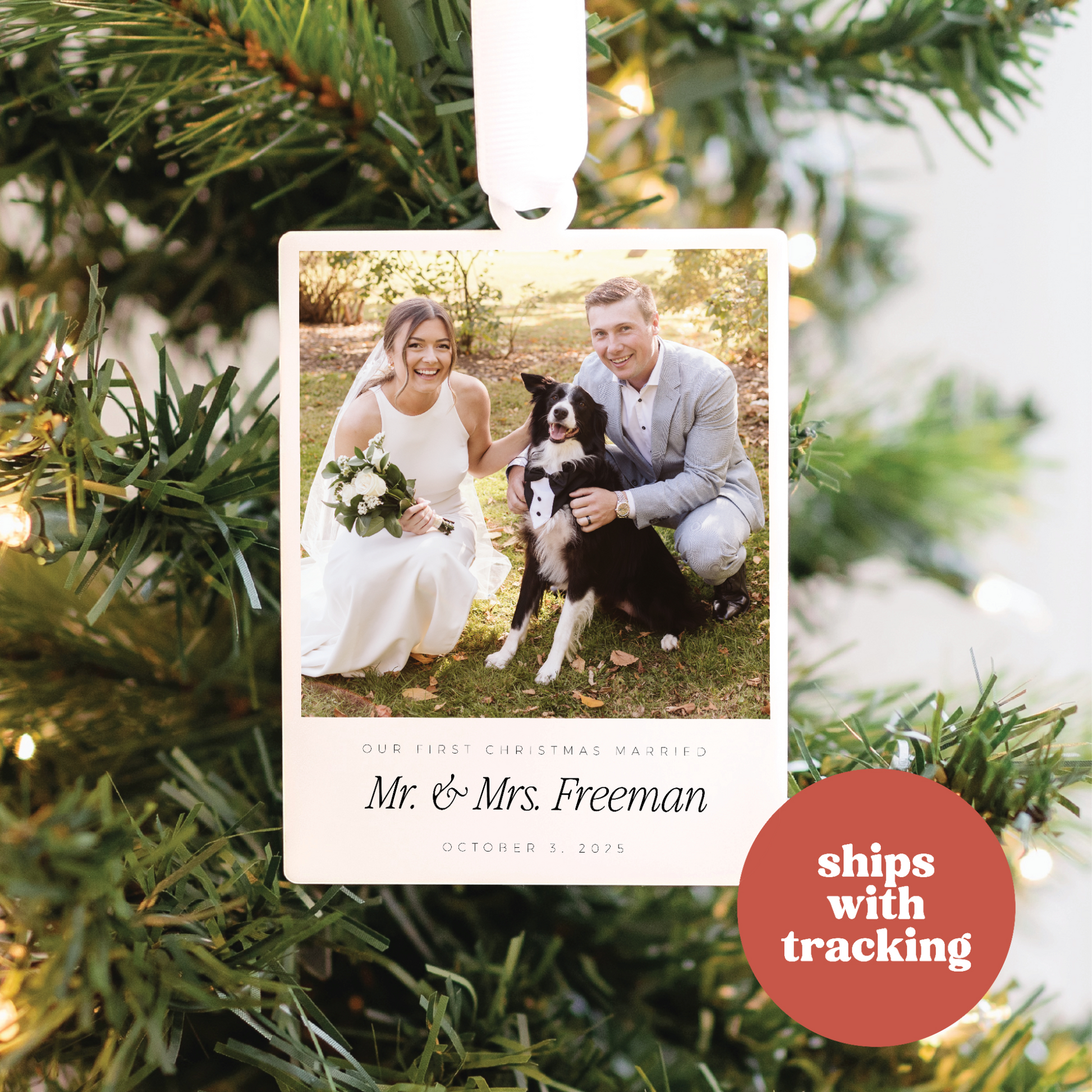 Custom Photo First Christmas Married Ornament | Personalized Newlywed Ornament | Mr and Mrs Christmas Gift | Wedding Picture Holiday Keepsake
