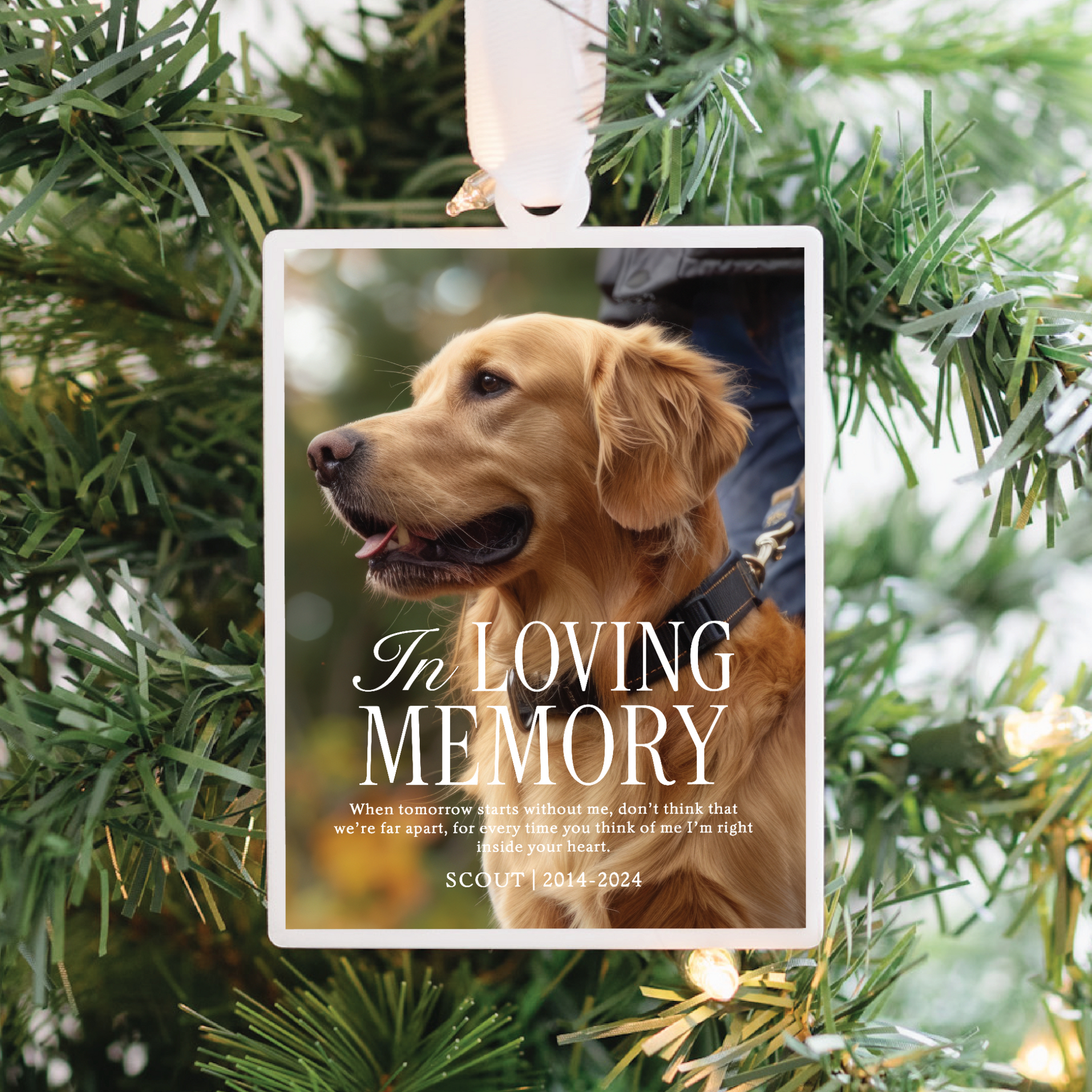 Honor the memory of a furry friend this holiday season with a personalized memorial ornament. Thoughtfully designed as a keepsake, this ornament serves as a beautiful reminder that those we love are always with us.